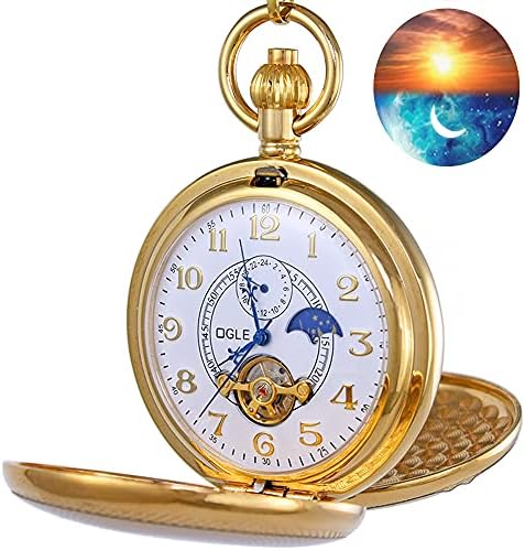 Tourbillon / Moon Phase / 24H Copper Case with Cover Double solid cover Watch Face Diameter: About 48mm Case Thickness: About 16 mm Case Material: Copper Chain Material: Alloy Chain Length(choose one): Mens necklace 360mm Women necklace 640mm OGLE provide Ladys necklace, if you Need Ladys necklace, please remark when payment?default send mens necklace. Package Content: 1 X Pocket Watch 1 X Original Gift Box 1 X User Book 1 X Free Chain Reminder: Specification (1 cm=10 mm=0.394 inch) (approximate)