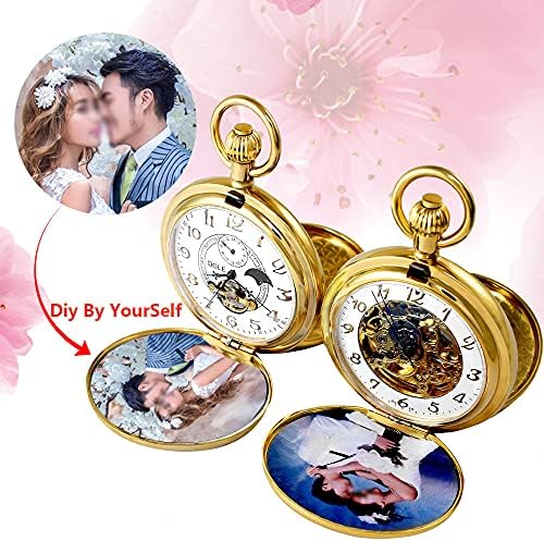 Watch was purchased as a gift for a groom. He was looking for a vintage ‘Peaky Blinders’ look and loved the look and feel of the watch. The watch opens on both sides simultaneously and allows you to see the inner workings on the back. When comparing it to another watch, it has a little more weight to it. It’s quite nice looking and should make a nice keepsake in the future. It also arrived very quickly.