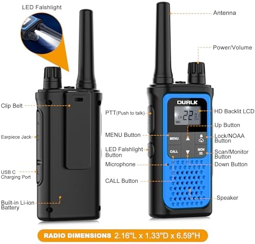 Walkie Talkies for Adults Long Range 2 Pack, Rechargeable Walkie Talkies 22 FRS Channels Two Way Radios with NOAA Weather Receiver, Noise Reduction, Volume Adjustment, LED Flashlight, 1800mAh Battery