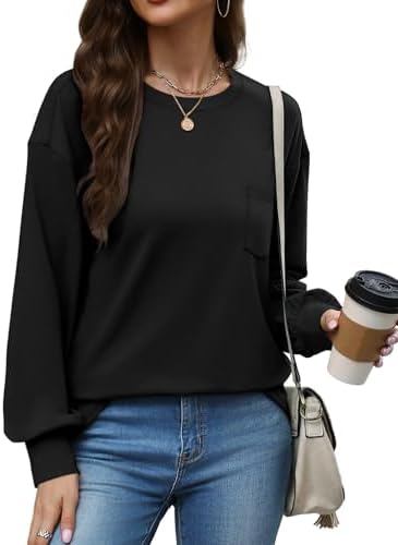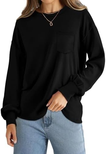 WIHOLL Womens Long Sleeve Shirts Fall Tops Casual Crewneck Loose with Pocket Trendy Clothes