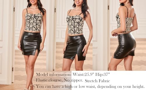Women's Faux Leather Skirt High Waist Tummy Control Bodycon Mini Short Skirt with Slit