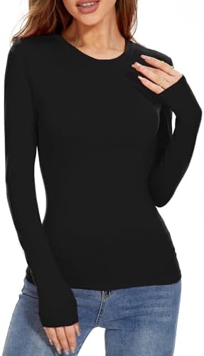 Urvicor Womens Long Sleeve Crew Neck Basic Slim Fitted Ribbed Knit Tops Shirts