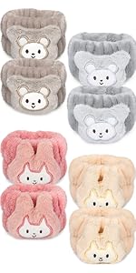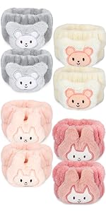 So cute! They do well in the washer and they fit comfortablely on my wrists. The elasticity is helpful. I use them every time I wash my face now cause they soak up all the water dripping down my arms! Definitely satisfied with this purchase.