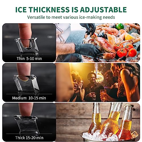 EFFICIENT ICE PRODUCTION & AIR COOLED DESIGN: Say goodbye to ice shortages with our industrial ice maker, capable of producing over 450 lbs ice within 24 hours and can store 300 lbs, 156 ice cubes can be produced in 5-15 minutes, our air-cooled ice maker required low water and energy consumption with minimal environmental impact, four cooling fans by the side of the unit for rapid and efficient heat dissipation