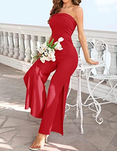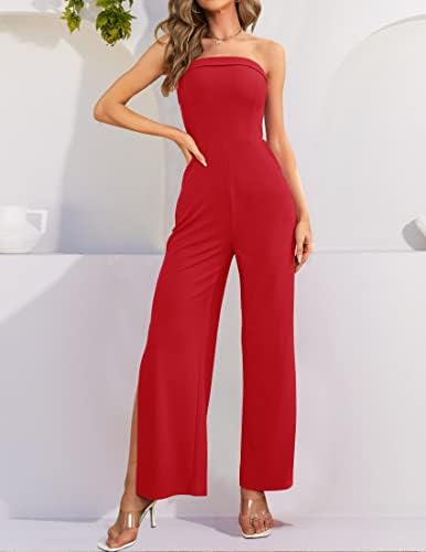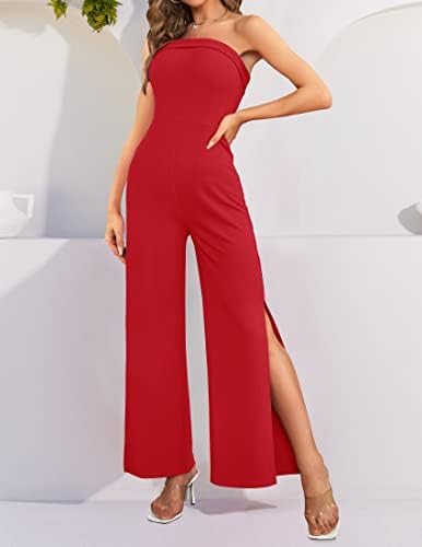ZESICA Strapless Wide Leg Jumpsuit Romper