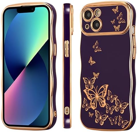 ZTOFERA for iPhone 14 Case for Girl Women, Cute Curly Wave Frame with Luxury Plating Butterfly Pattern, Soft TPU Gold Edge Shockproof Raised Lens Protection Phone Case for iPhone 14, Dark PurpleRecommendations